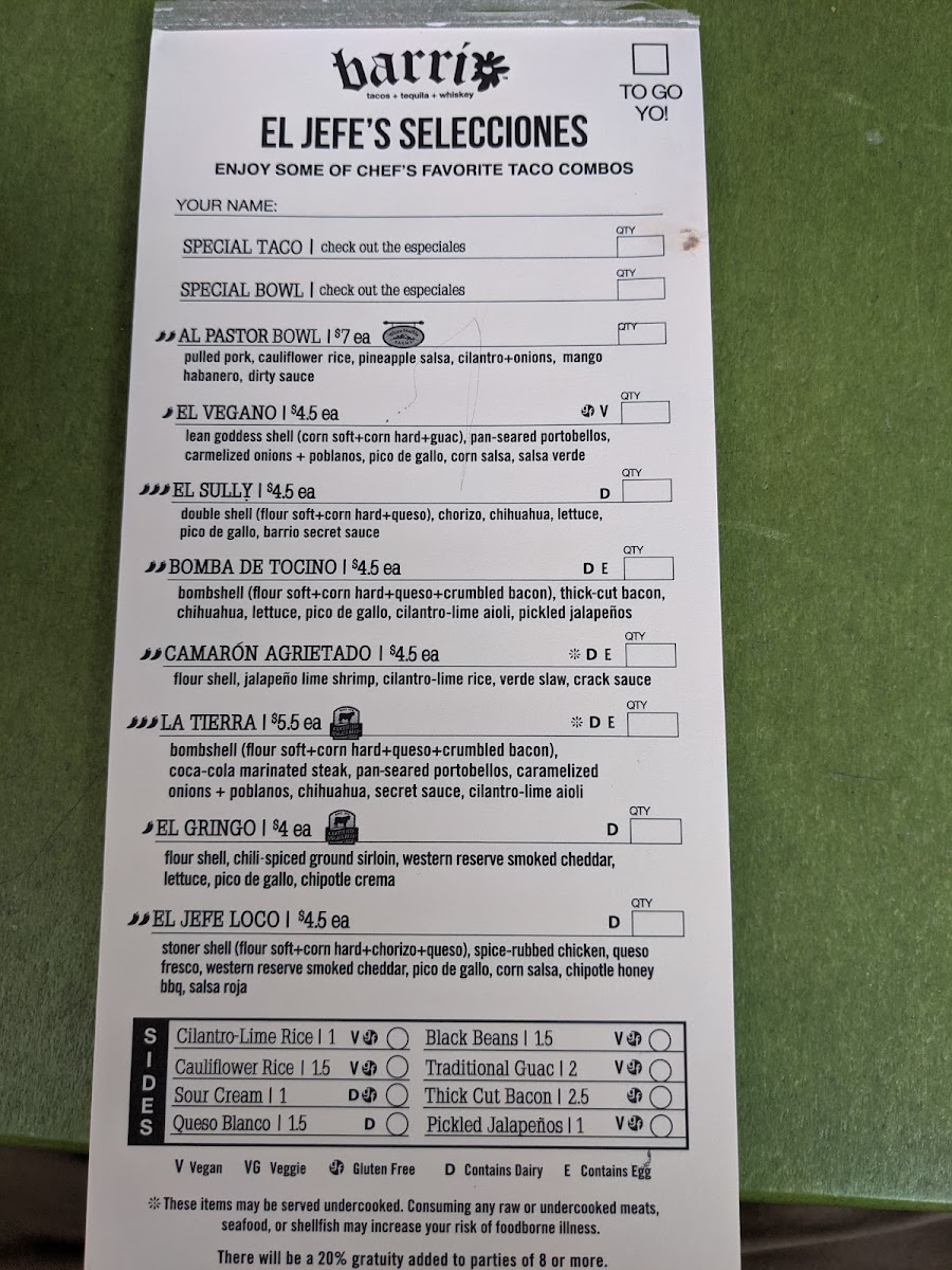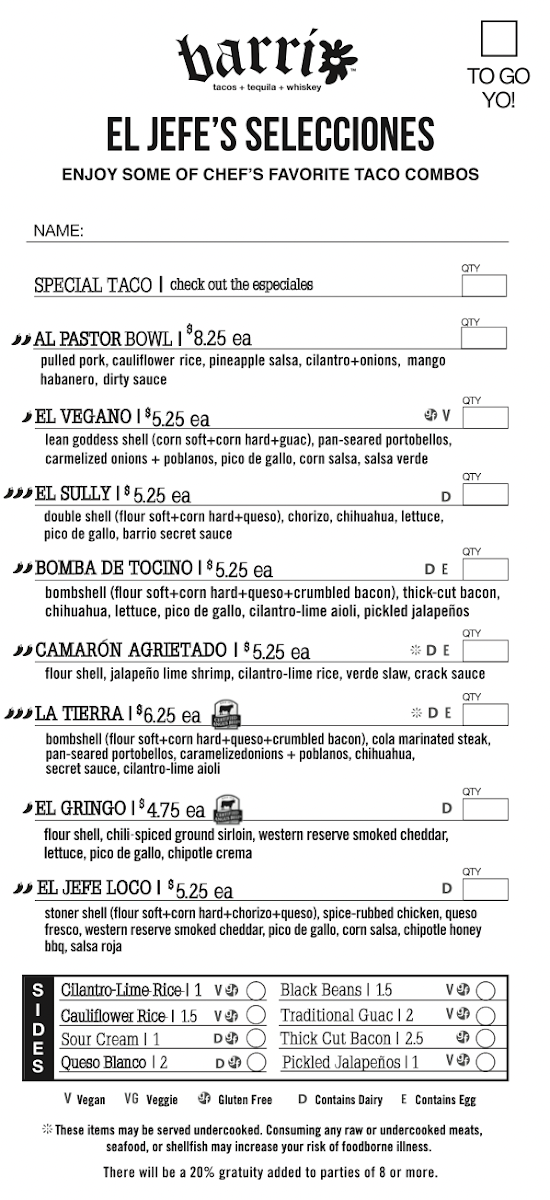 Barrio Tacos Cleveland Heights Menu